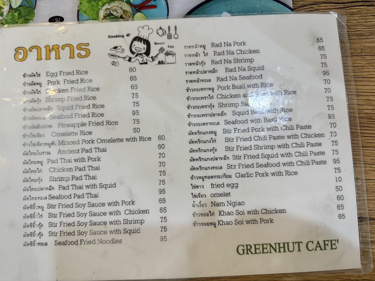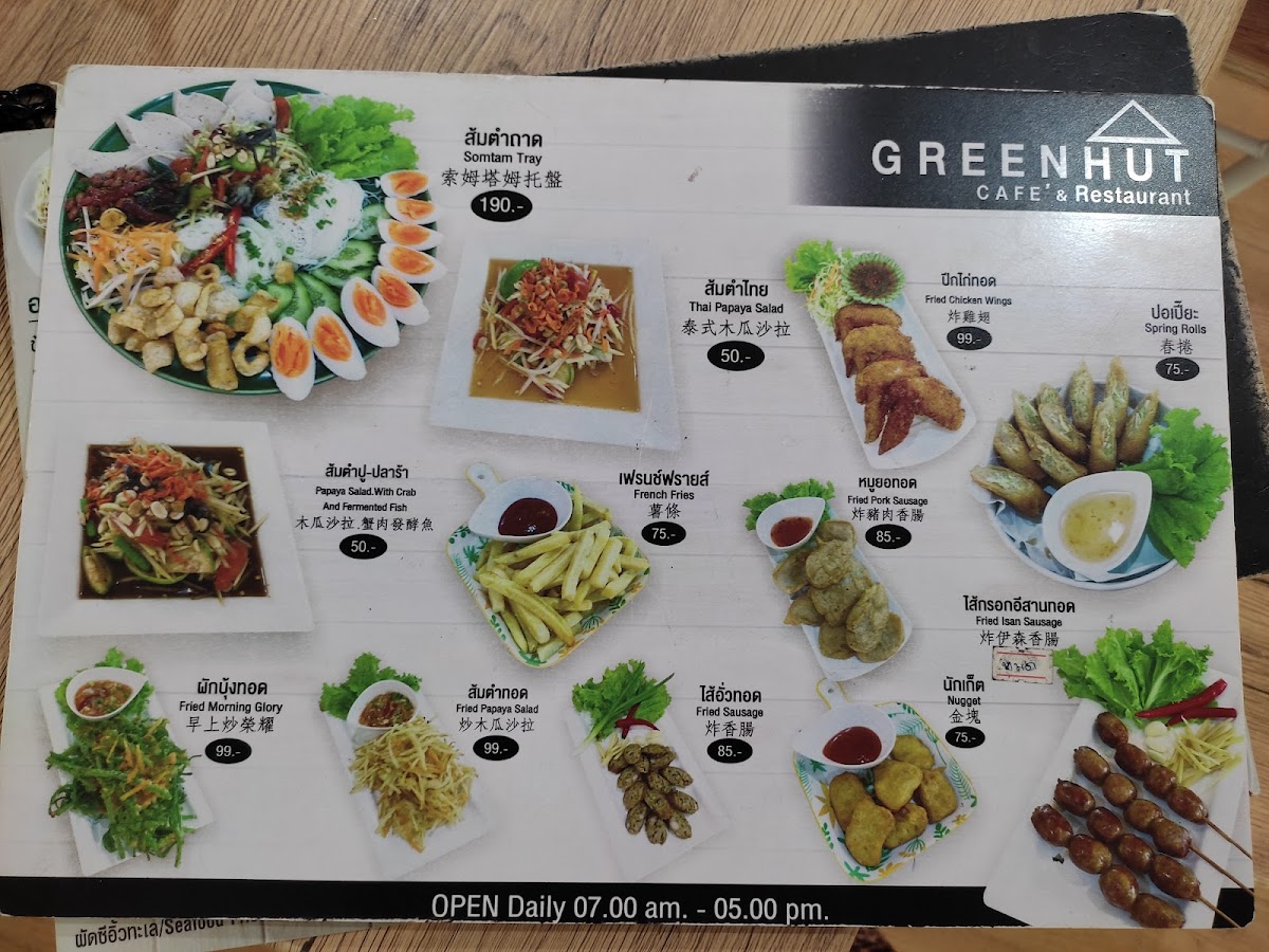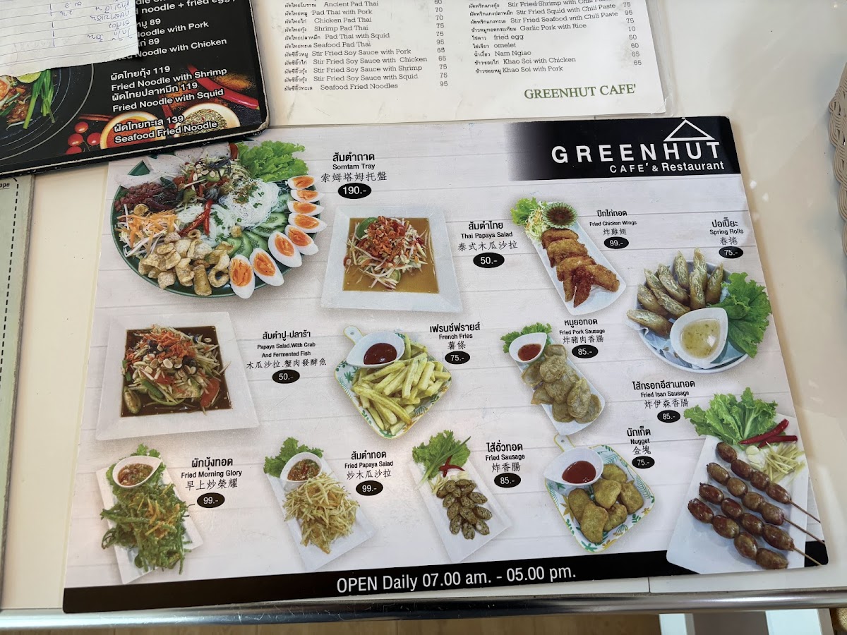 “ For FOOD, go NEXT DOOR to the Noodle Bar (seems image). They use gloves while preparing your papaya salad. The BBQ pork for 80 baht is tender and real. If you order tea they get it from Greenhut anyways. Excellent cheap local option. ”